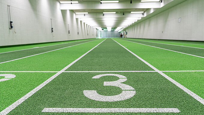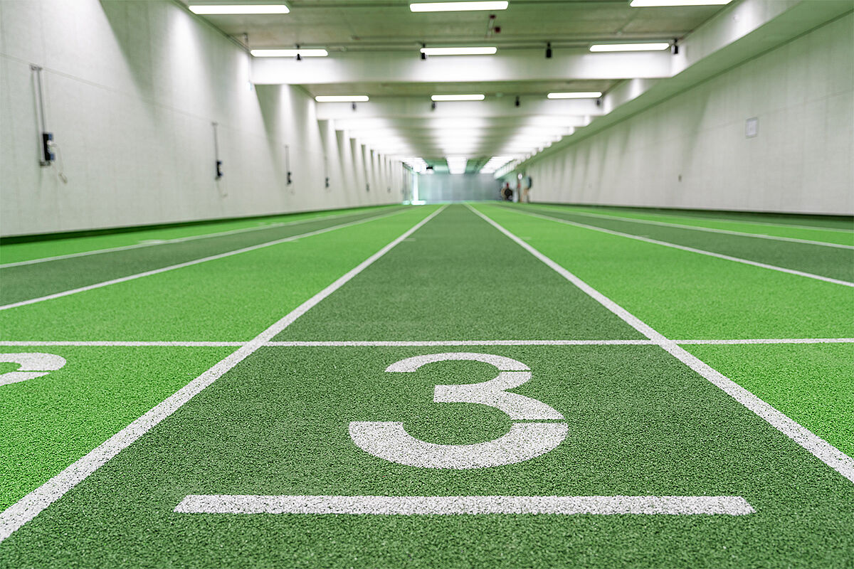 The REGUPOL champion AG system was installed in the combined running and shooting hall. This is a seamless, cast-in-place sports flooring system designed to meet the demands of integrated running and shooting training.