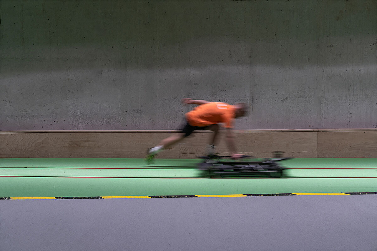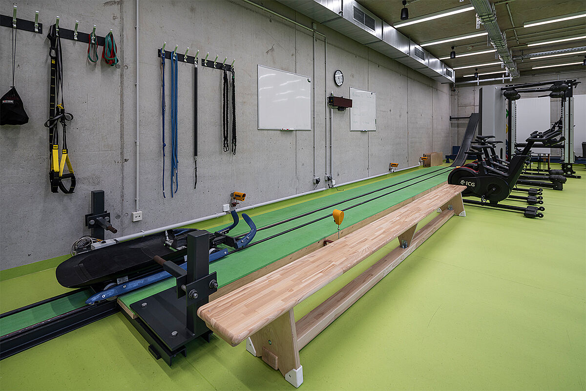 REGUPOL flooring was also installed in the center’s push-start areas. REGUPOL everroll ultimate Galway was laid both on the short track in the fitness area and on the long bobsleigh push-start track.